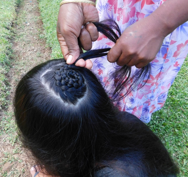 I have a special set of pictures to share from my Micronesian friends. Mackilo braided Dravleen's hair in a beautiful spiral braid. How lovely to see this braid appear before my very eyes.